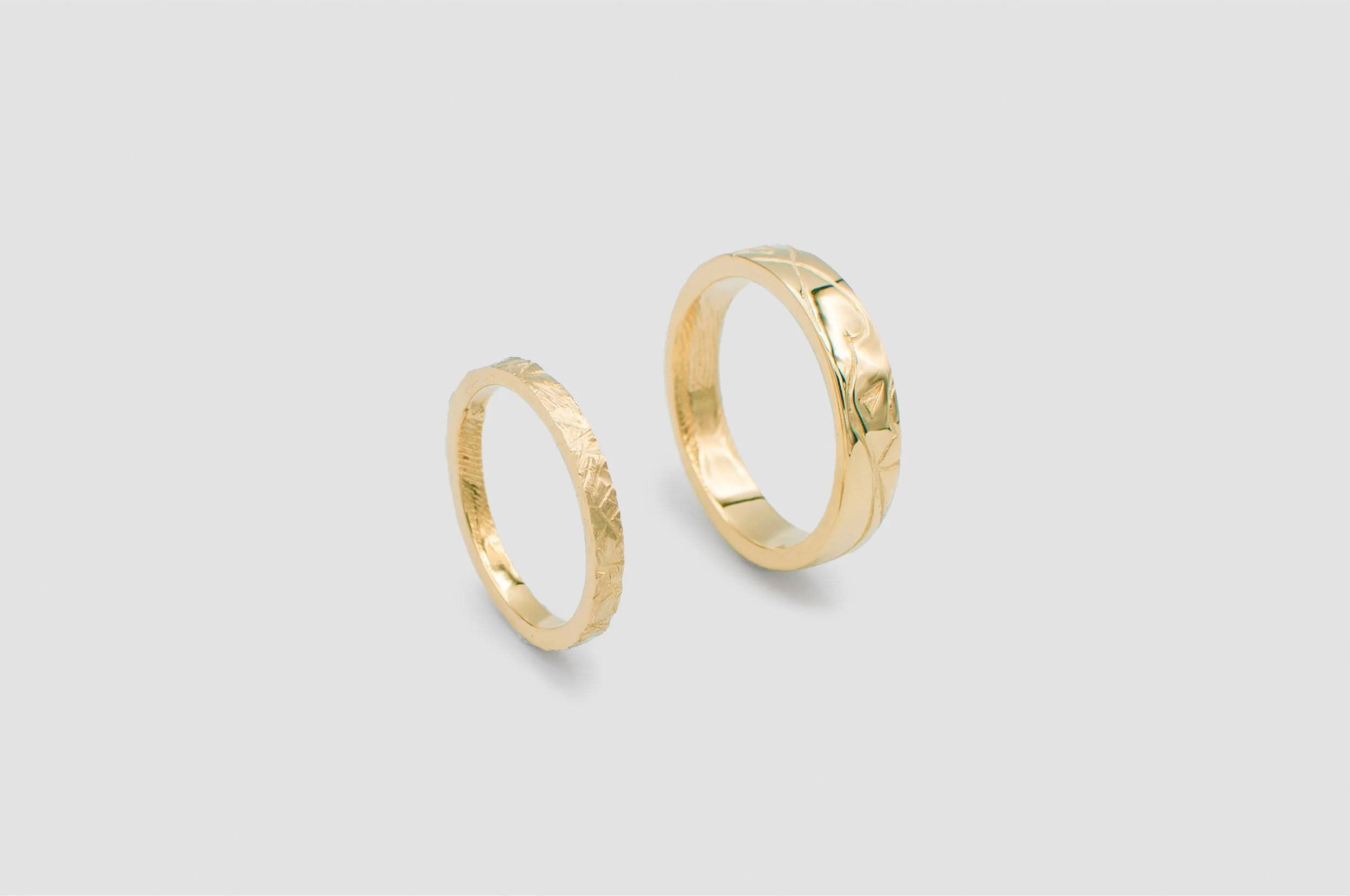 One of the beautiful aspects of working with wax is the freedom it gives you to experiment with textures. You can create countless unique surface effects on your rings, from organic, hand-carved patterns to subtle marks that tell the story of your process, and ultimately, your beautiful relationship. Some couples even choose to imprint their fingerprints on the inside or outside of their rings, making them truly personal. If you prefer something more classic, you can go for a smooth high-polish finish or a refined matte look.